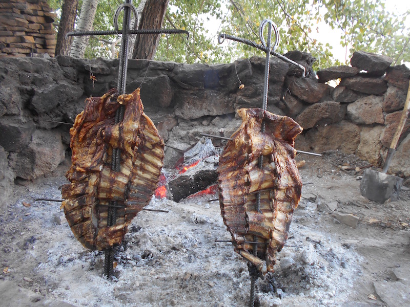 Two rib cages from a cow being cooked in the traditional asado (bar-b-que) style. Oh my goddess, so good!