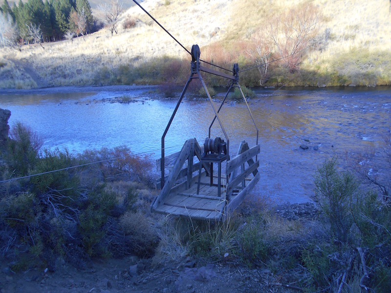 This is a cable car used for crossing the river. For much of the year the river was too high to cross with a vehicle. Sometimes it was too high to cross with a horse. There is a hand crank to move the geared bobbin of cable.