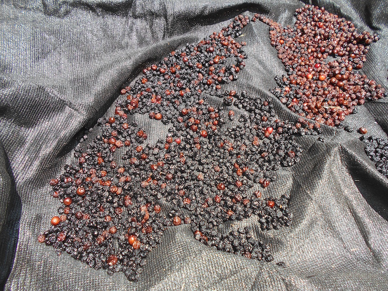 Cherries being dried in the sun on top of shade cloth. I would have preferred not to dry my food on top of plastic but I couldn’t come up with a better option.