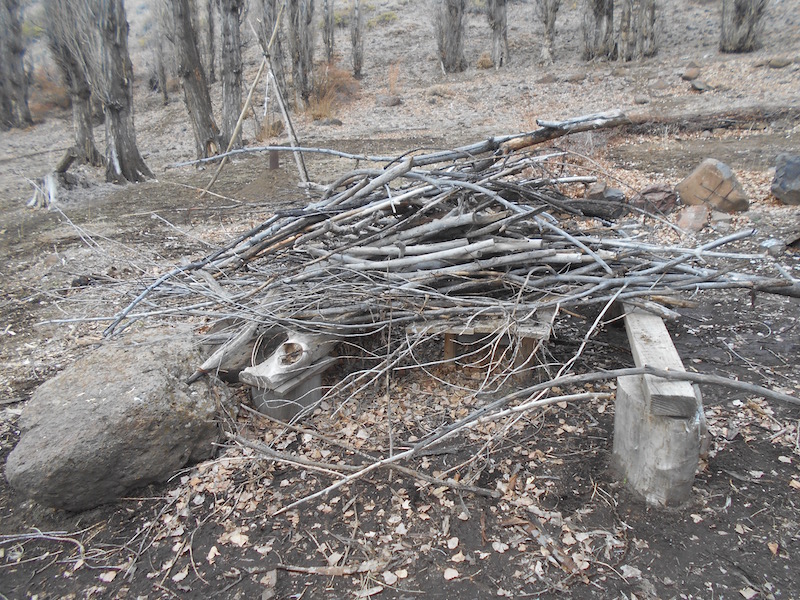 In a few ways the house could qualify as “ecological”: the wood fired stove, wood fired water heater, the compost toilet, some of the building materials (wood and stone from onsite), plus my low energy requirements. I would have preferred an adobe home or another earthen structure like cob. I would have even preferred a yurt or toldo. In any case this house served as my home for my first year in Patagonia.