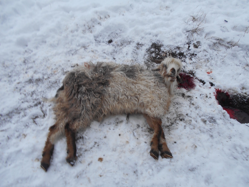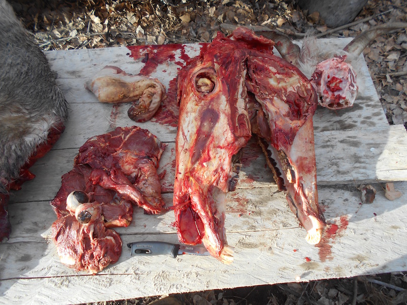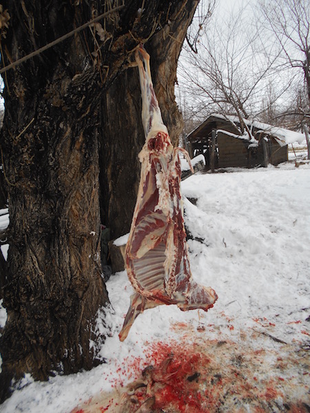 A quick photo series of winter goat slaughter and butcher in the mountains: