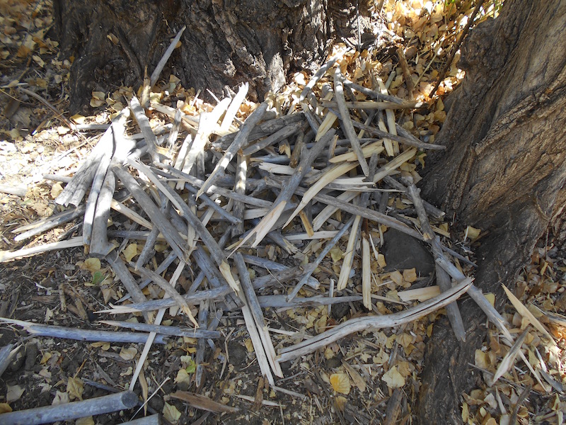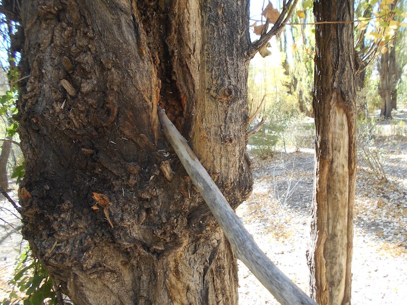 So I switched to using leverage to break branches, which required much less energy to accomplish than using the saw or axe. I used a crook between a poplar tree and it’s branch for splitting wood. I placed the tip of the branch into a pocket of the tree while applying side-ways pressure to the branch.