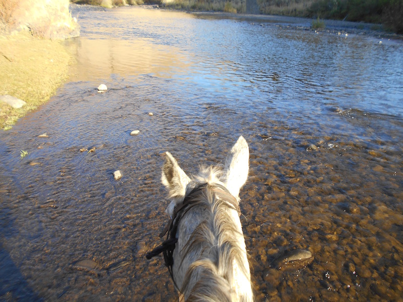 This is the horse that I primarily used to get around. We are crossing a river together.