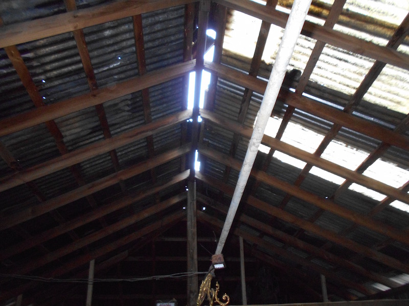 I lived alone in a house of stone, wood and concrete. The house is poorly designed and constructed. There is no insulation. The roof is made of reused corrugated metal, dotted with old nail holes and is very leaky. It is missing part of it’s ridge-cap. The walls and roof block most of the wind and sun, but since there are many air gaps and holes: rain, leaves and snow blows in through the roof or walls. Unwanted critters co-habitate. There is plastic (not glass) for some windows.
