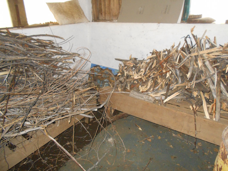 Different grades of wood (kindling and firewood) was stored inside the house, up off the ground on top of bed frames.