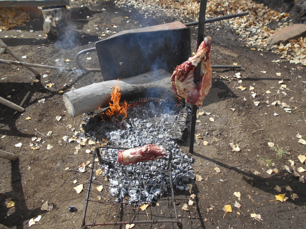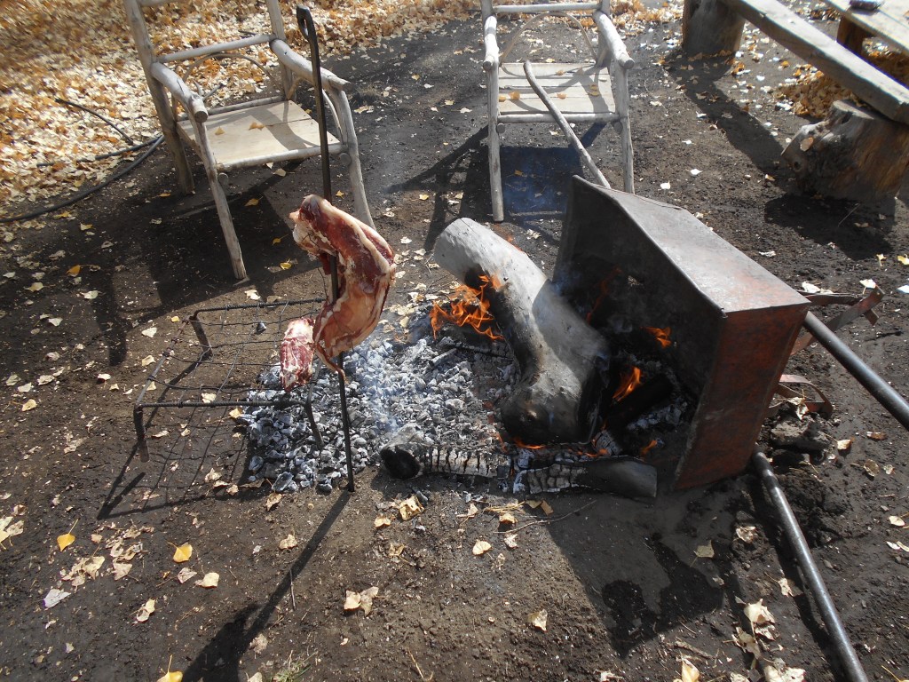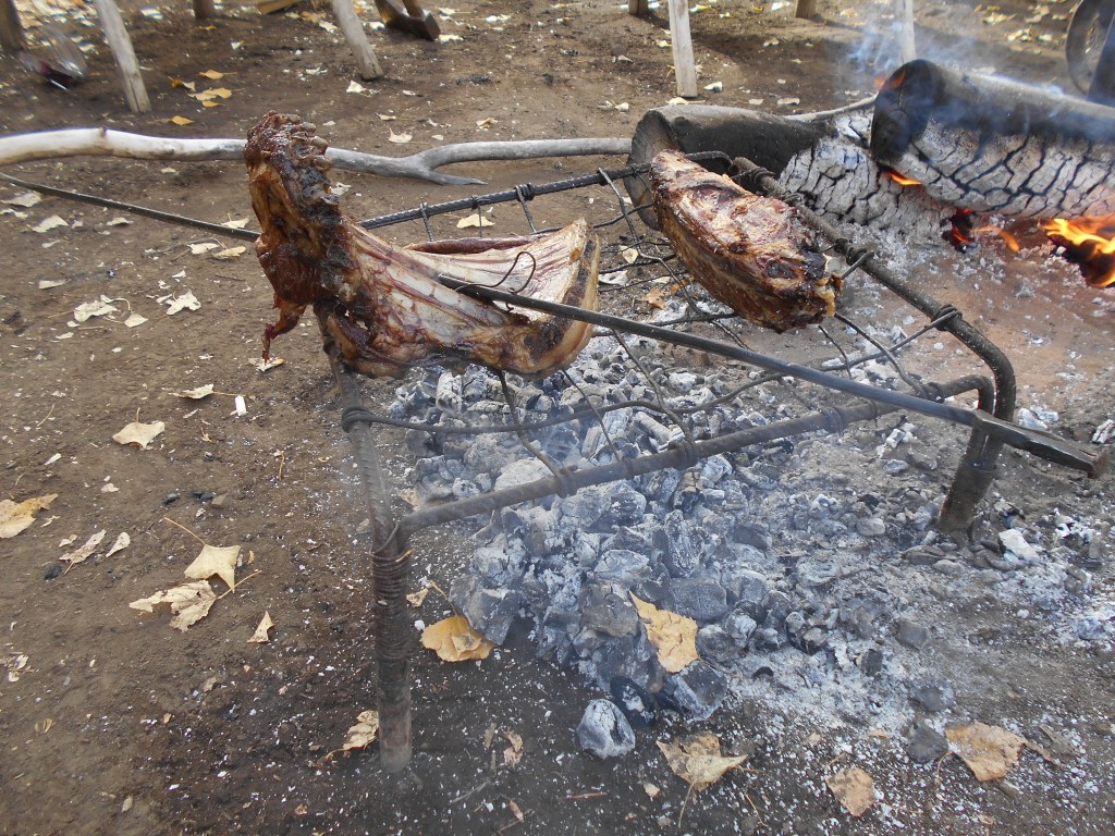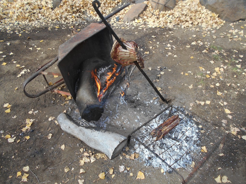 Goat neck on the parilla and ribs on the asador.