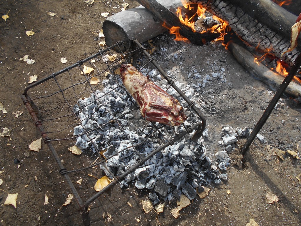 Any parts that don’t cook thoroughly can be finished with the parilla (grill) method described below. Just remove the asador from the ground and place the meat horizontally across the parilla (grill).